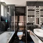 Aside from modern facilities like a flat-screen TV with satellite channels, the interior is also complemented by an iron and ironing board, and climate control for maximum comfort. Beds fitted with non-allergenic pillows are at guests' disposal. A bathroom has a separate toilet, a bath, and a shower, as well as a dryer and bathrobes.